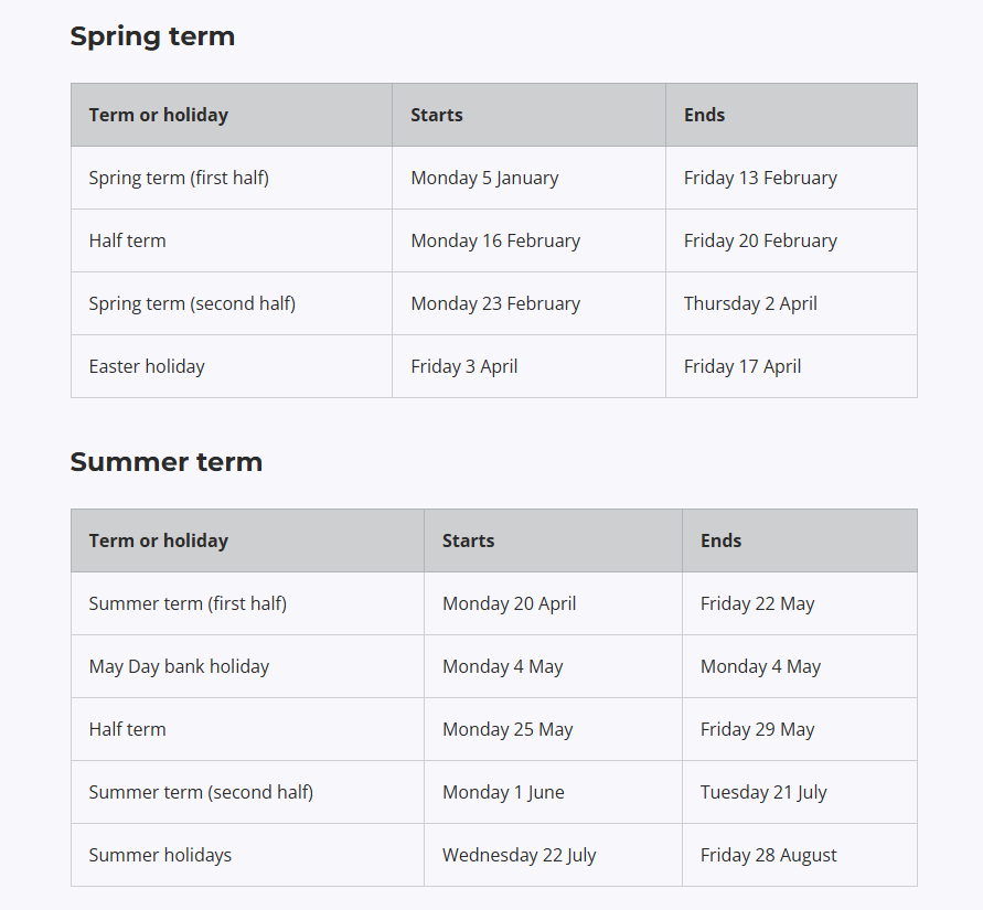 Our term dates are aligned with the Leeds City Council dates. Please note however that we start slightly later. More information can be found on their website.